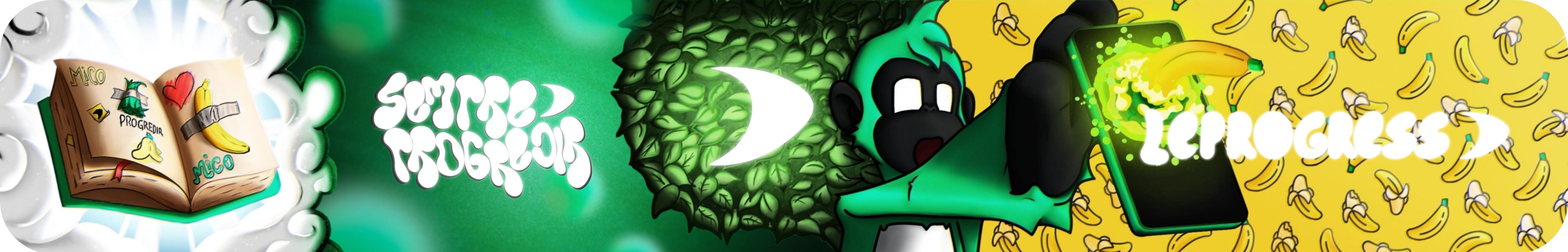 As folhas ao fundo remetem à natureza, o ambiente de origem do nosso mascote, o Mico. Elas simbolizam crescimento, vitalidade e transformação.